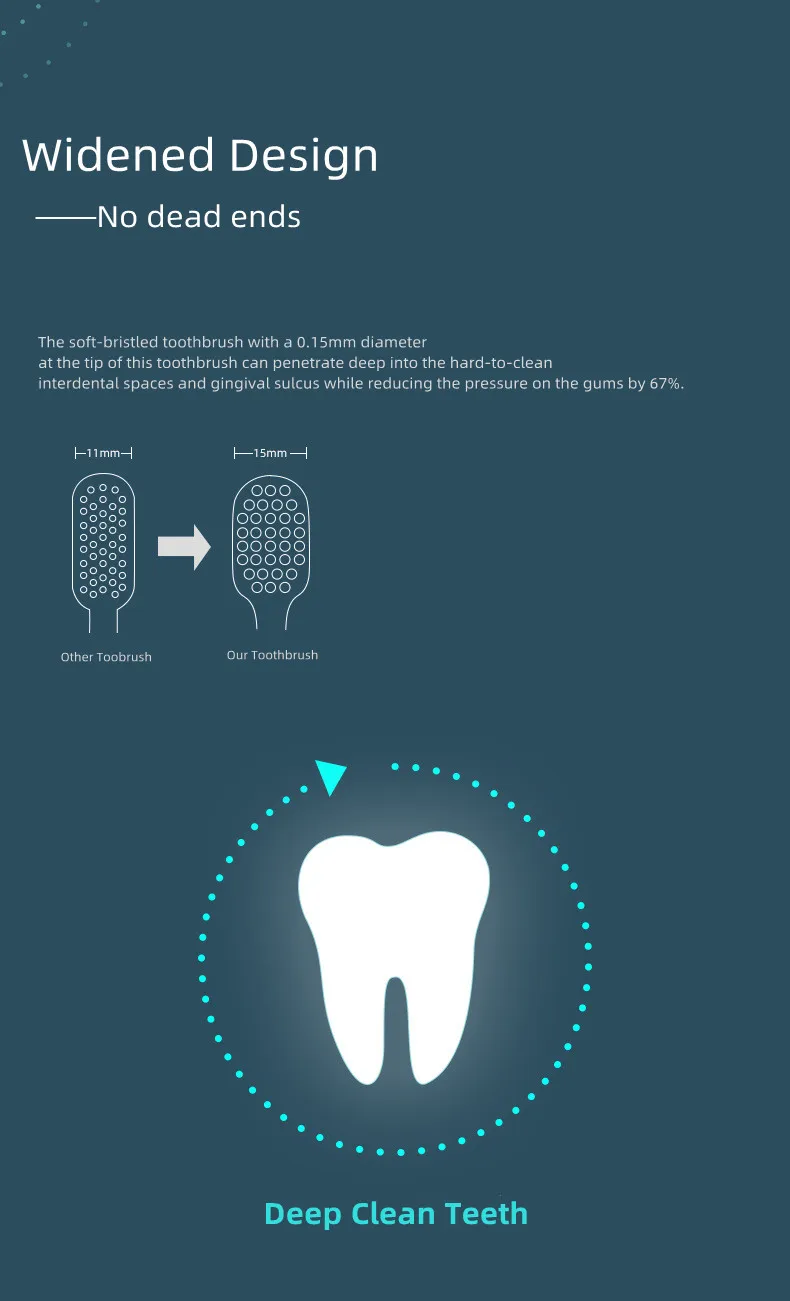 Description:New high quality. With 15mm toothbrush head, you can deeply clean your teeth, every corner. Micron soft hair, more effective and gentle care for gum health. It adopts environmentally-friendly and antibacterial fiber hair, which is environmentally safe. Suitable for bleeding gums and gums.1.Specification: Product material: environmentally friendly antibacterial fiber hair + PP high light handle .2.Product weight: 25g/1pcs3.Color: blue,yellow,green,red4.Product teatures: Million ultra-fine bristles for effective deep cleaning of teeth. Micron soft hair, effective care for gum health. Brush have available in four colors. The material is environmentally safe. It is suitable for people with bleeding gums and sensitive gums.5.Package Included: 1/2*toothbrush. Notes: Due to the difference between different monitors, the pictures may not reflect the actual color of the item. Compare the detail sizes with yours, please allow 1-3cm error, due to manual measurement. Please leaving a message before you give the bad feedback, if the products have some problems. Thanks for your understandings.